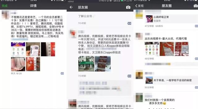 相信大家在朋友圈和微信群都看到过类似的广告,一张影视VIP卡就可以观看全网各大影视平台的影剧。声称只需35块(更甚有只需10元的)、便可让价值1728元的超级VIP特权加身,让你闪闪发光一整年,畅游腾讯视频、爱奇艺、乐视、搜狐、土豆、酷6、B站、优酷、芒果TV、风行网、PPTV、56等国内各大视频门户网站!