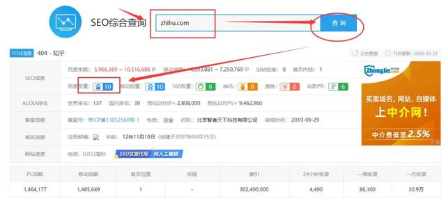 我们可以使用爱站来查询知乎目前高排名的内容。