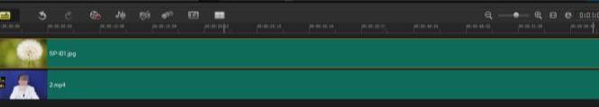 2、视频轨道1拖进去背景图,然后拉到跟视频一样长度。