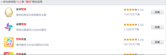 应用商城搜壁纸,就会出现很多相关的APP了。
