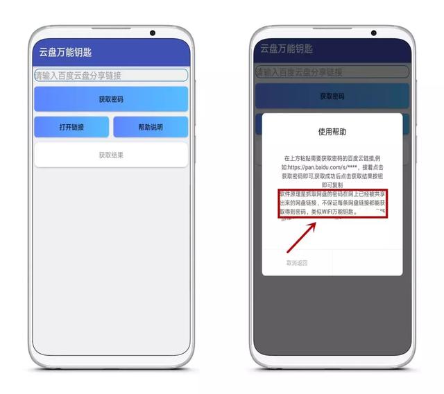 这是一款专门爆破度盘云链接密码的钥匙软件,输入云盘链接,点击“获取密码”即可等到该资源链接密码